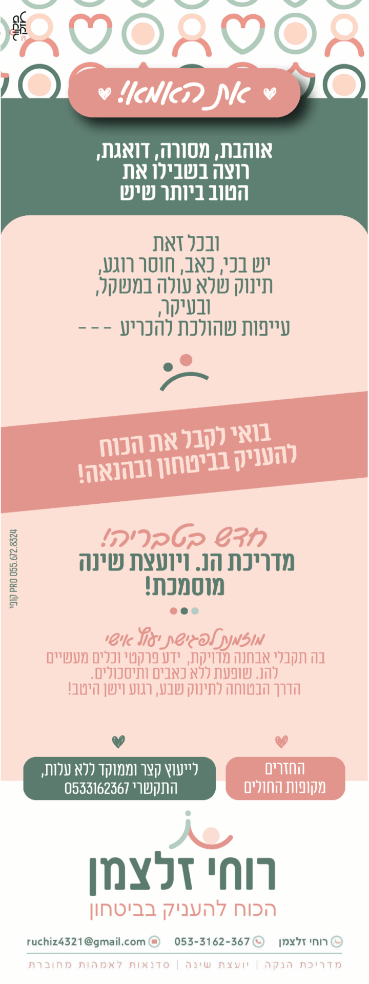 ייעוץ אישי ומיוחד לתקופה המיוחדת, כדי שתצליחי להניק בבריאות וברוגע בס"ד.