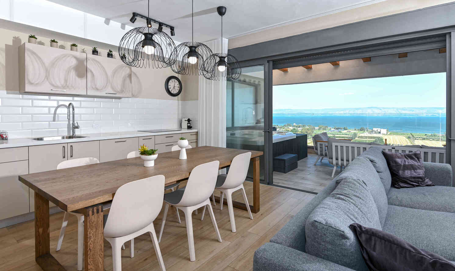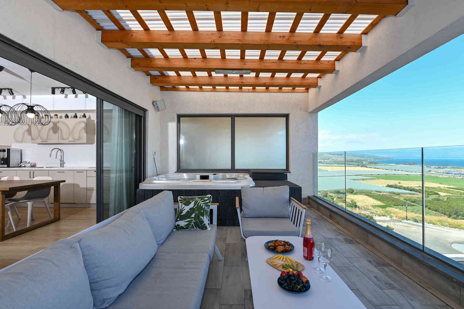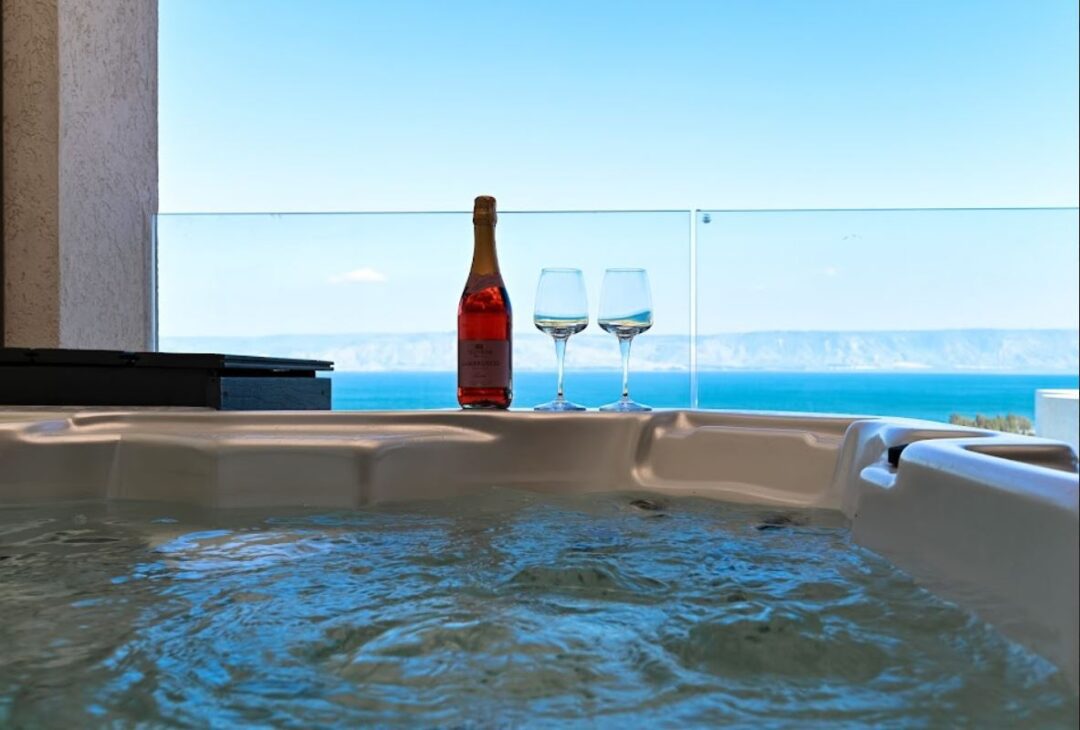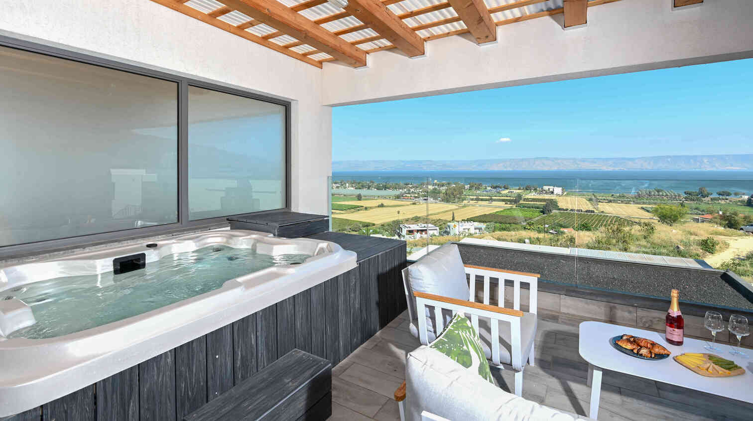 סוויטות נוף לכנרת וג'קוזי פרטי במגדל בסוויטות יוקרתיות ומושקעות. 2 חדרי שינה כל אחד. מותאם ל 6 אנשים נוף עוצר נשימה של הכנרת. (6 סוויטות, של עד 6 אנשים לסוויטה, כך שמותאמת גם לקבוצות של עד 36 איש) מטבח מאובזר ויוקרתי ואינטרנט אלחוטי מיקום מעולה: מגדל שקטה, דקות ספורות מטבריה חניה חינם כלולה