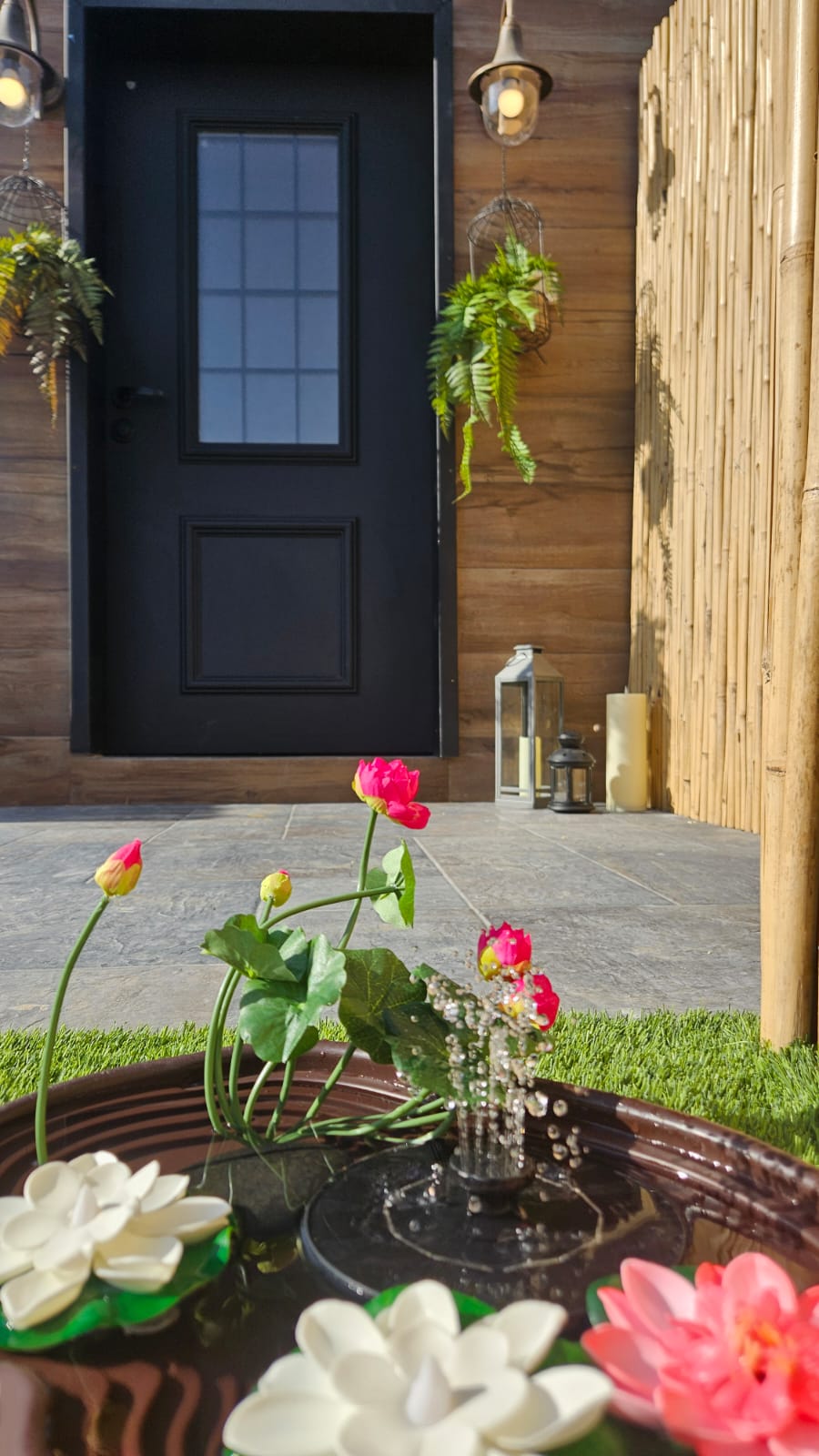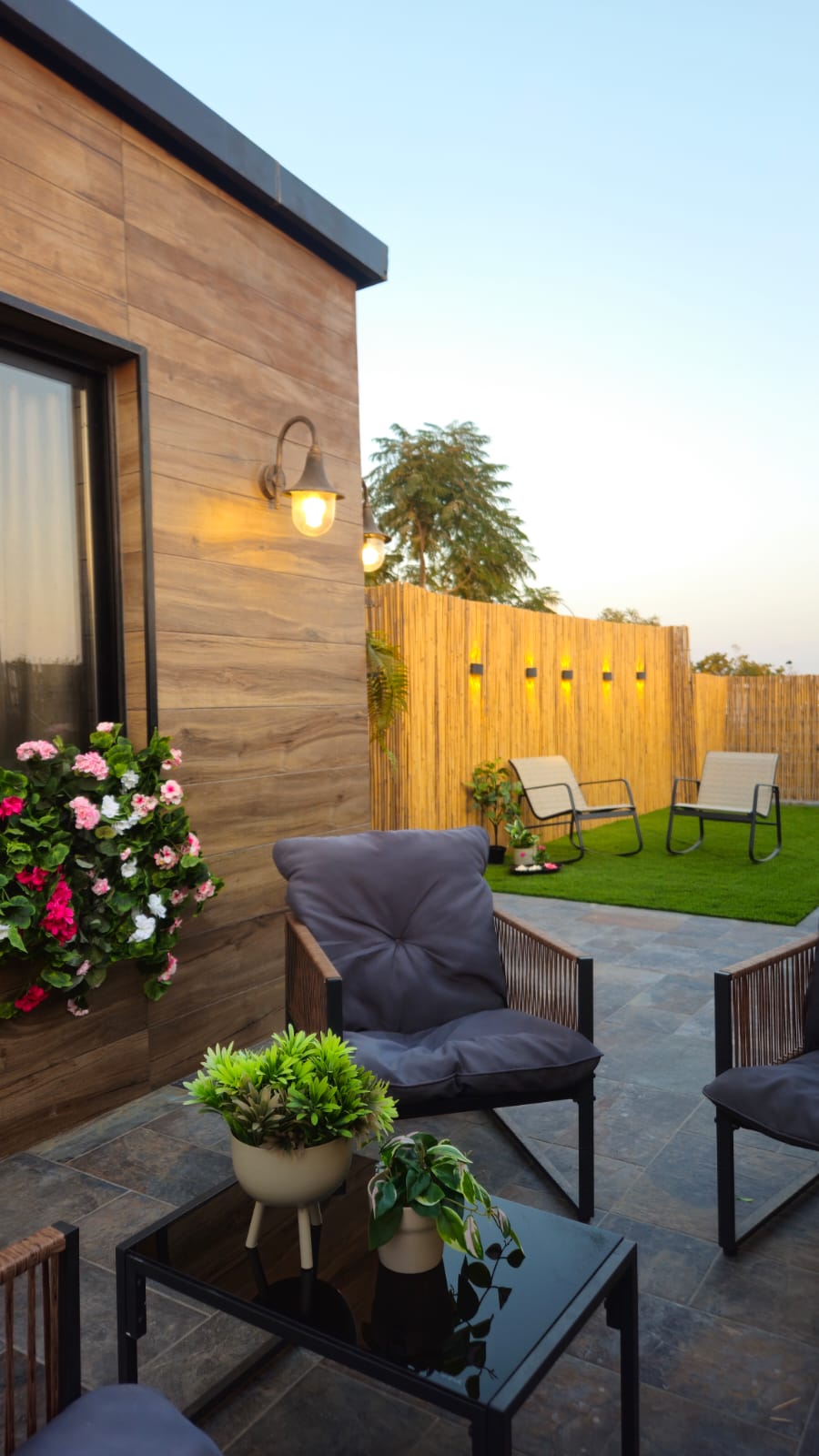 🌿 חצר פרטית רחבה עם דשא סינטטי, פינת ישיבה, מנגל גריל גז, ערסל מפנק.