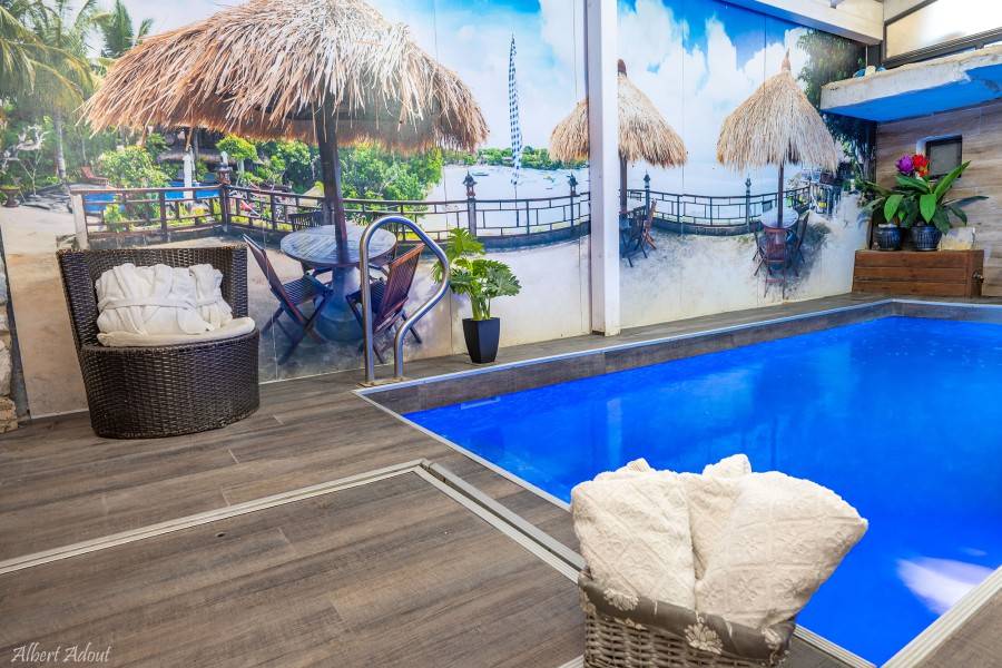 ובריכה פרטית מוצנעת הניתנת לפי שעות בפרטיות מלאה.