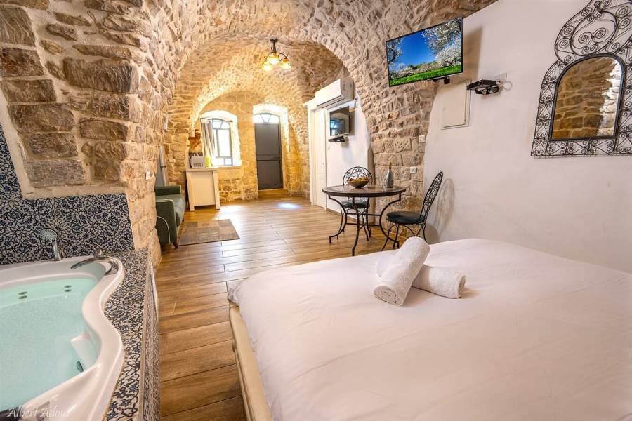 מתחם צימרים אחוזה בלב העתיקה שוכנת במבנה אבן מהמאה ה-14.