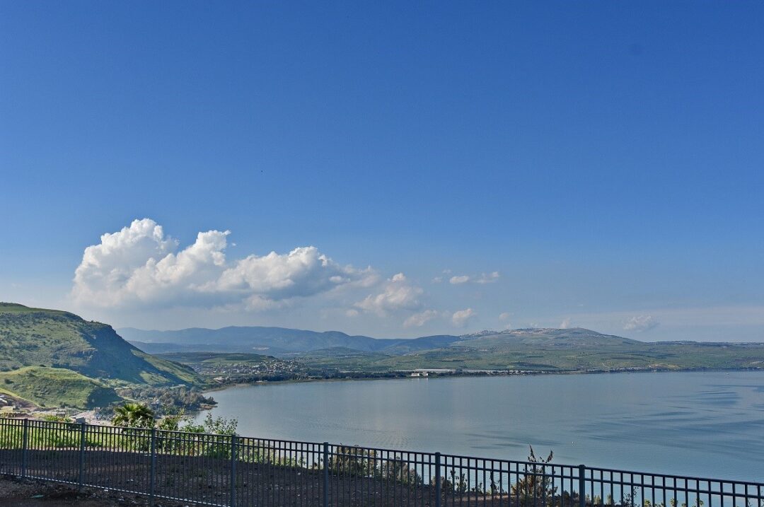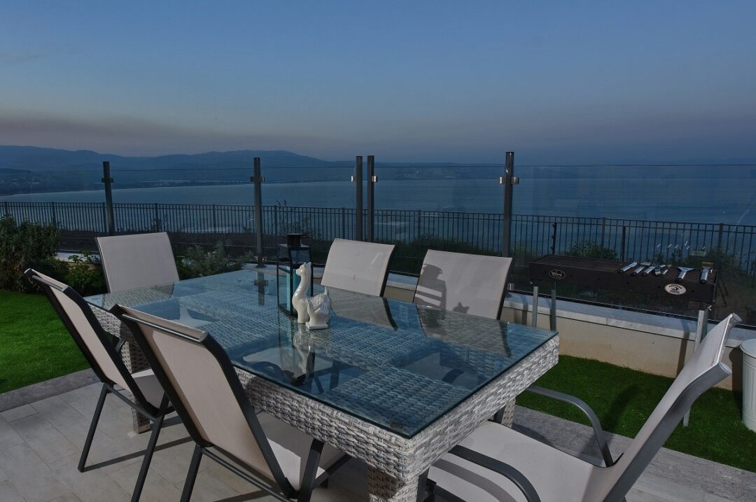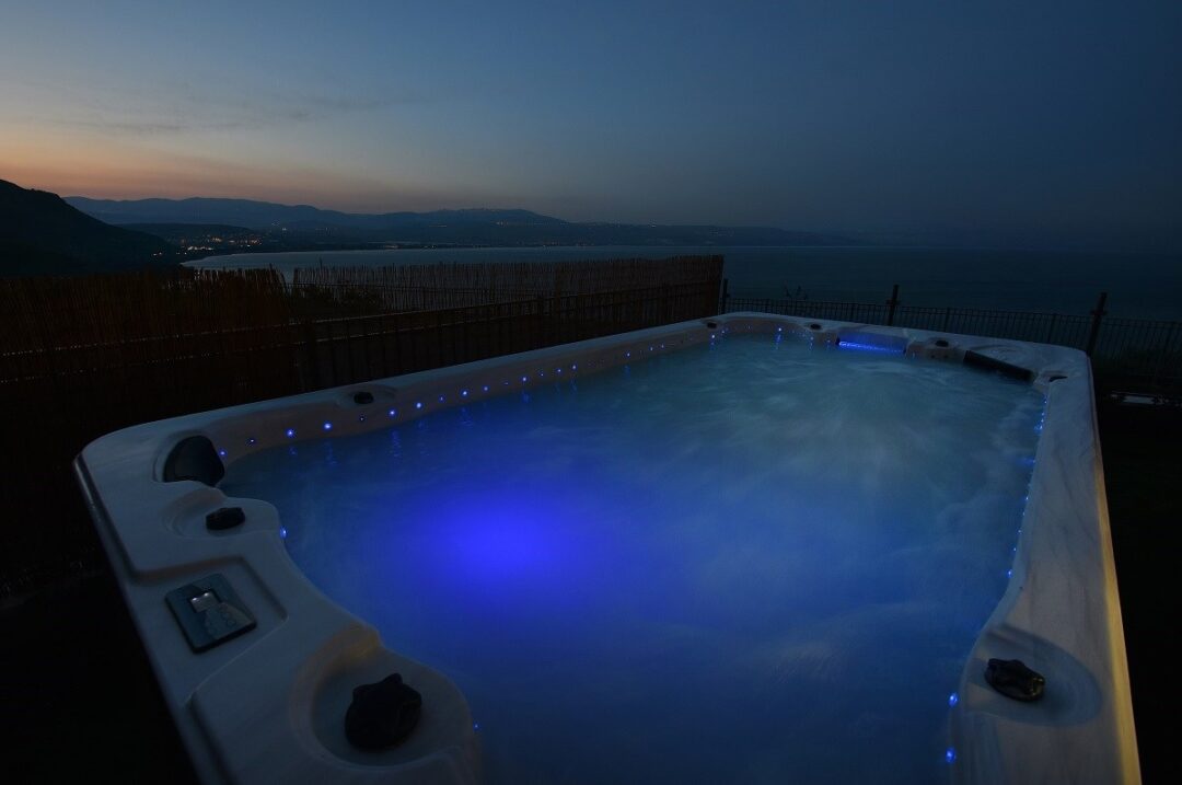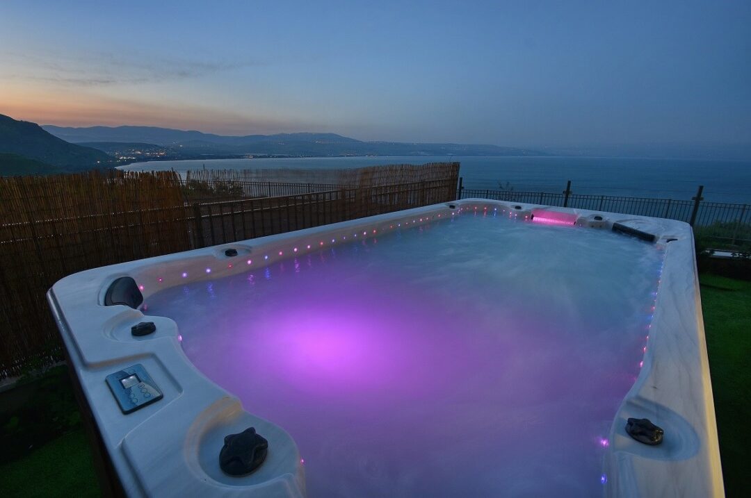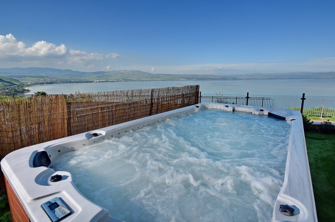מרפסת עם נוף מדהים לכנרת והסביבה כולל בריכת זרמים מחוממת.
